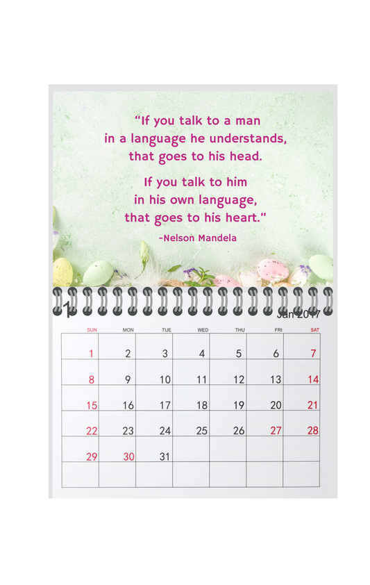 Academic Year Inspirational Language Quote Calendar 2025-26, inspirational quotes about language acquisition, language learning quotes calendar,