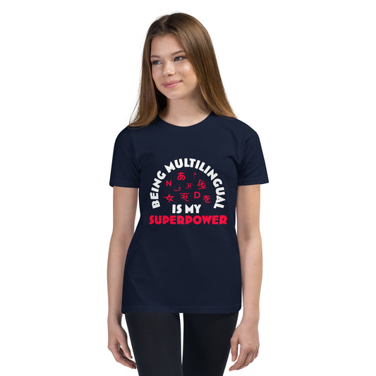 Camiseta de manga corta para jóvenes Superpower multilingüe.Precio habitual $27.00 USDPrecio habitualPrecio unitario / por-