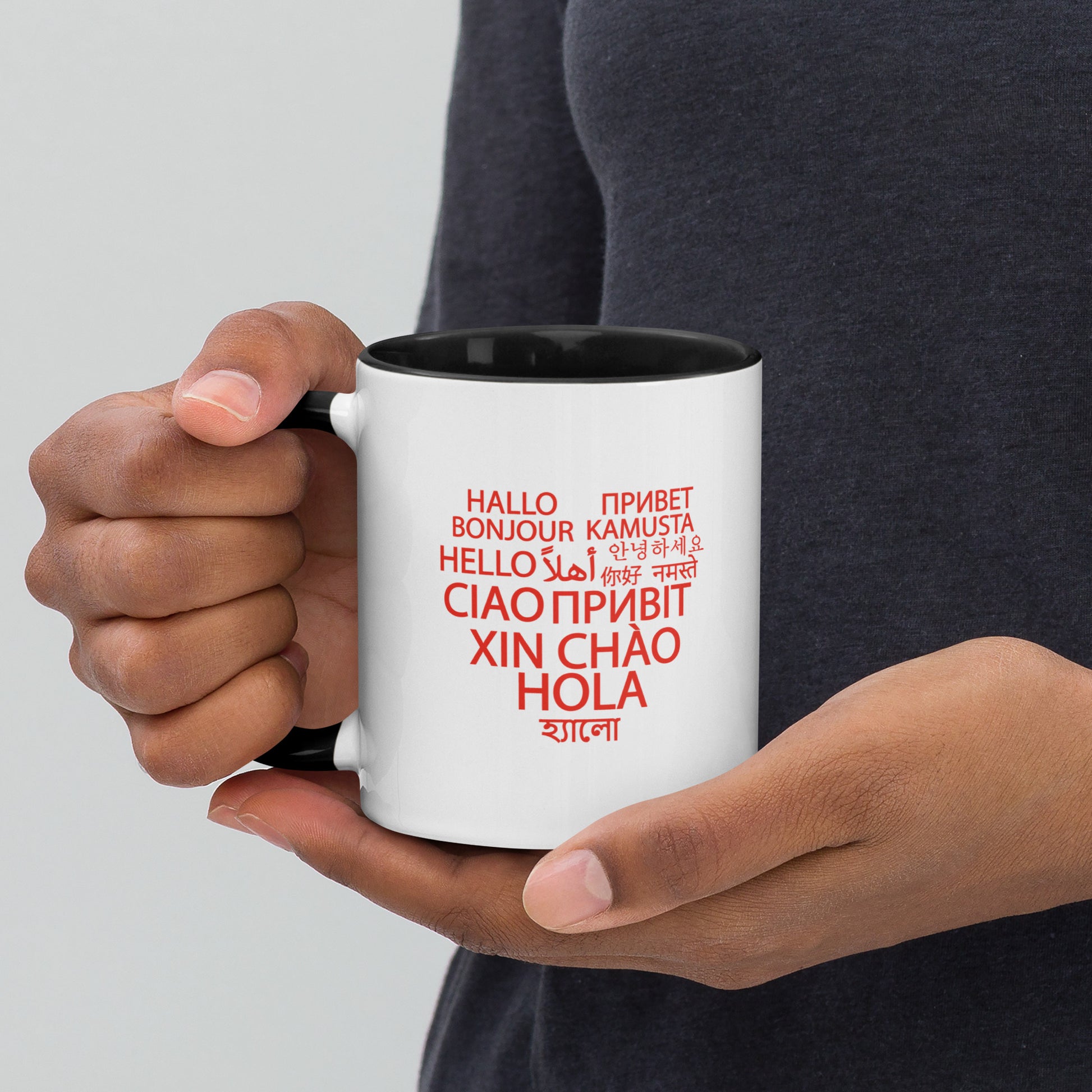 Celebrate bilingualism with this Hello in different languages. Add a splash of color to your morning coffee or tea ritual! These ceramic mugs not only have a beautiful design on them, but also a colorful rim, handle, and inside, so the mug is bound to spice up your mug rack.