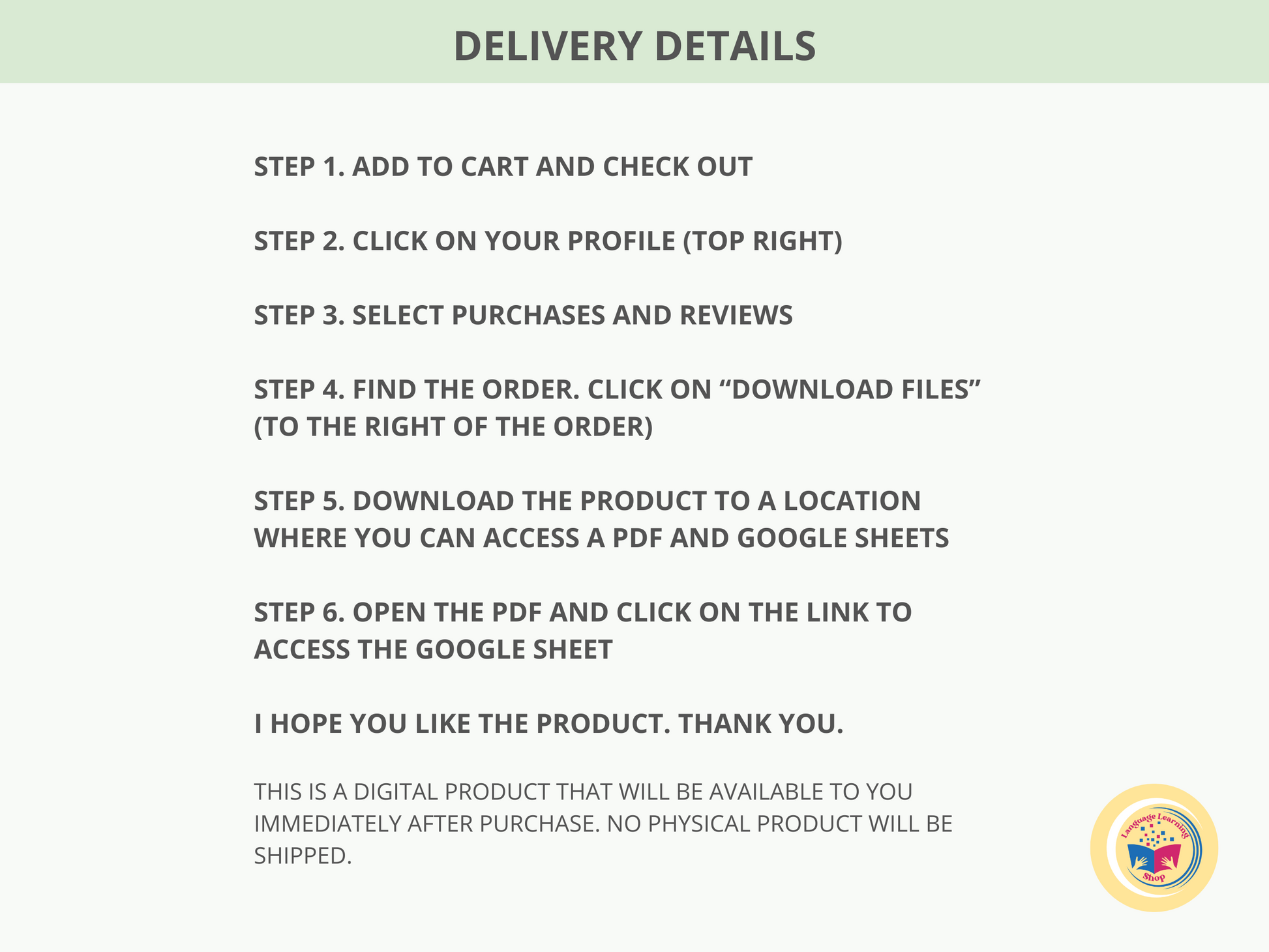 The Travel Budget & Planner Spreadsheet is a digital product you will be able to access instantly after purchase from the PDF download file.
