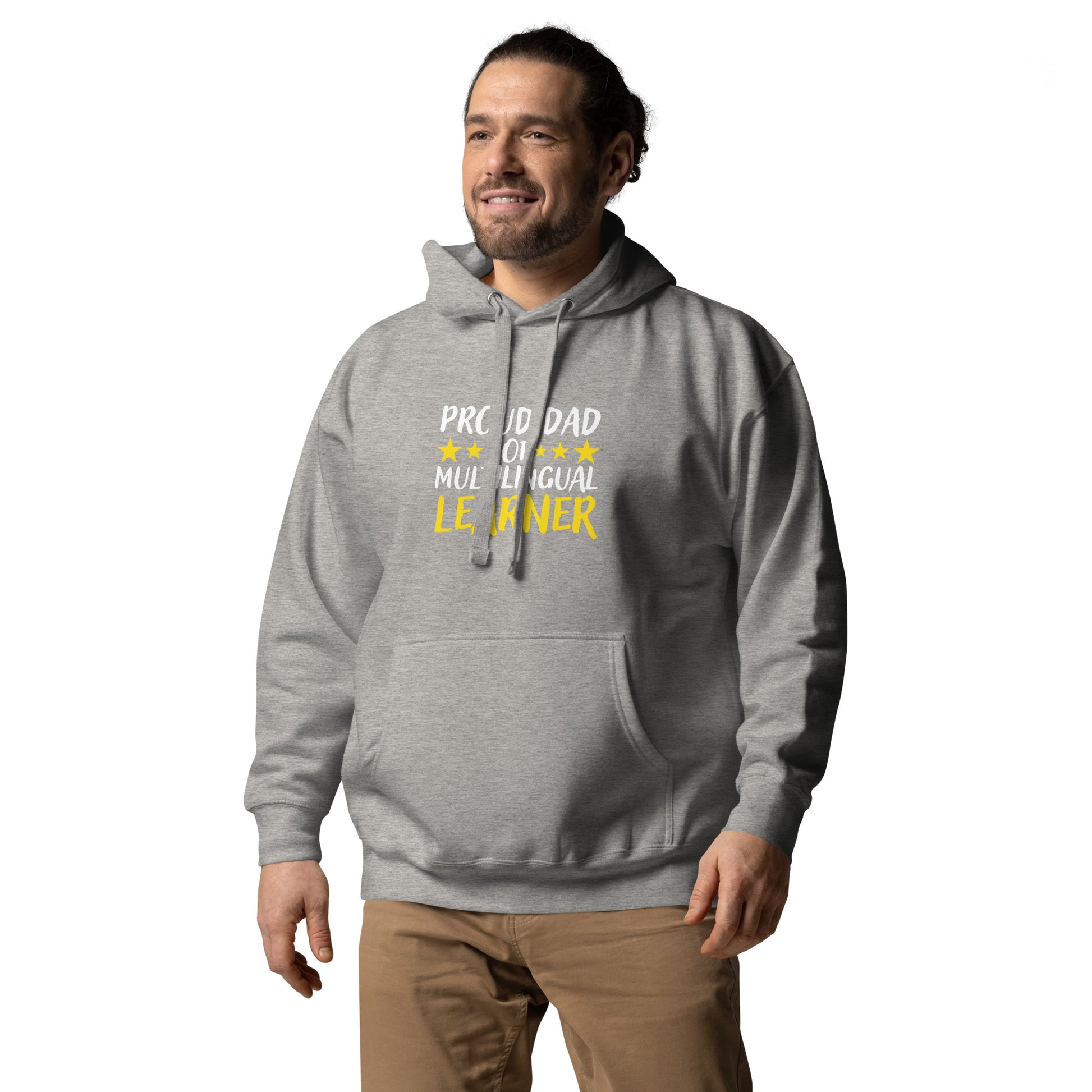 LEmbrace your identity as a proud multilingual learner dad with our cozy "Proud Multilingual Learner Dad" Hoodie! Featuring a stylish design and empowering message, this hoodie is perfect for dads who value language and cultural diversity. Stay warm and showcase your commitment to multilingualism while enjoying quality time with your family.